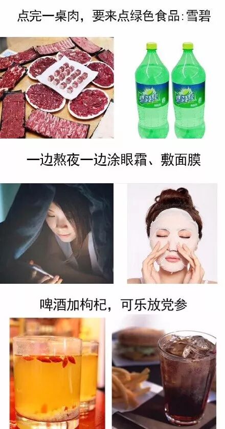 他们孜孜不倦地熬夜,又勤勤恳恳地养生护肤,被网友戏称为“养生朋克”。在一边作死一边自救的道路上越走越远。但谁也没办法把习惯说改就改,也就只能自欺欺人的骗自己说:我很养生。